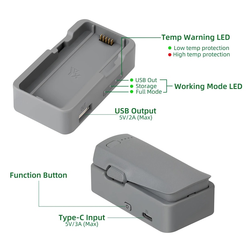 - Two built-in intelligent modes: full charge mode or storage mode (60-65%) to preserve battery life